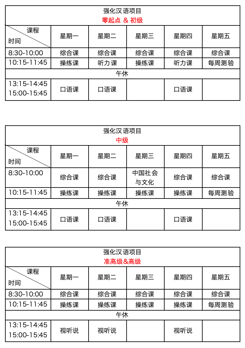 注意:为保障教学安排有序进行,学生缴纳学费后,第一学期内原则上不予调整至其他中文项目学习。