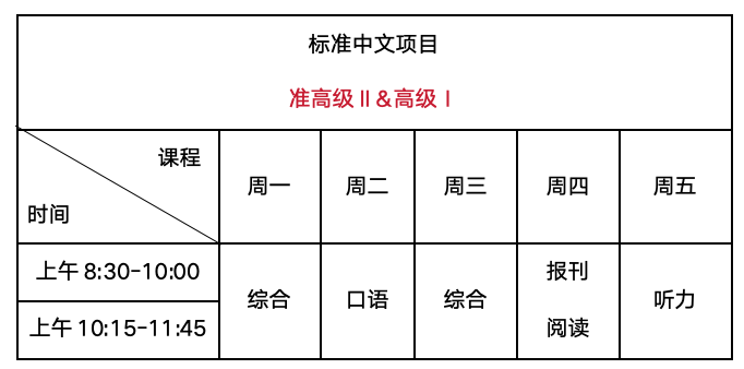 注意:为保障教学安排有序进行,学生缴纳学费后,第一学期内原则上不予调整至其他中文项目学习。