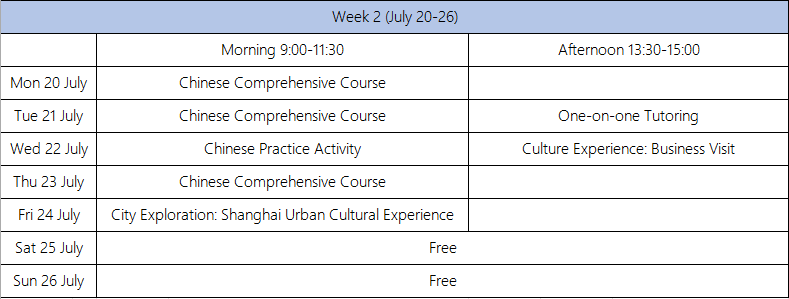 * Language and Culture Lectures are offered at different proficiency levels. Topics may include Chinese character culture, Shanghai-style culture (Haipai culture), folk customs, and more.