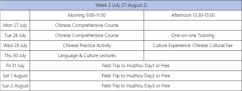 * This fee includes tuition, textbooks, cultural experience activities, standard double room accommodation (twin sharing with private bathroom), welcome banquet, farewell banquet, and the three-day Huizhou field trip.