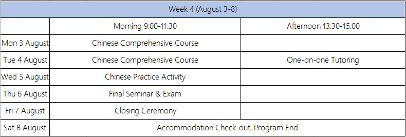 * This fee includes tuition, textbooks, cultural experience activities, standard double room accommodation (twin sharing with private bathroom), welcome banquet, and farewell banquet.